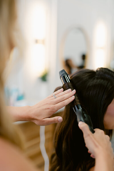 Our process begins with a questionnaire to discuss your vision and style preferences. From there, we work with you to create a customized hair styling plan that will not only complement your dress and overall look but will also fit within your wedding day timeline.